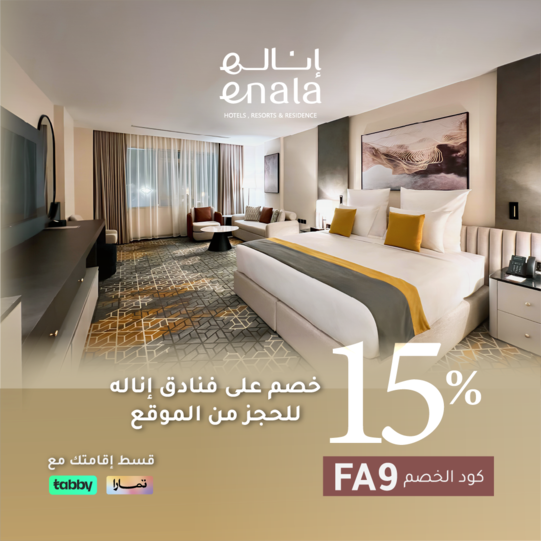 Enala Tabuk Hotel includes 112 luxurious rooms and suites, each of which is characterized by high privacy and modern design. The hotel also includes a 24-hour front desk and daily housekeeping service. The hotel also includes a restaurant that offers a special menu, a varied morning breakfast, a coffee shop, free parking, a fitness center, a chapel and a hall. for occasions.