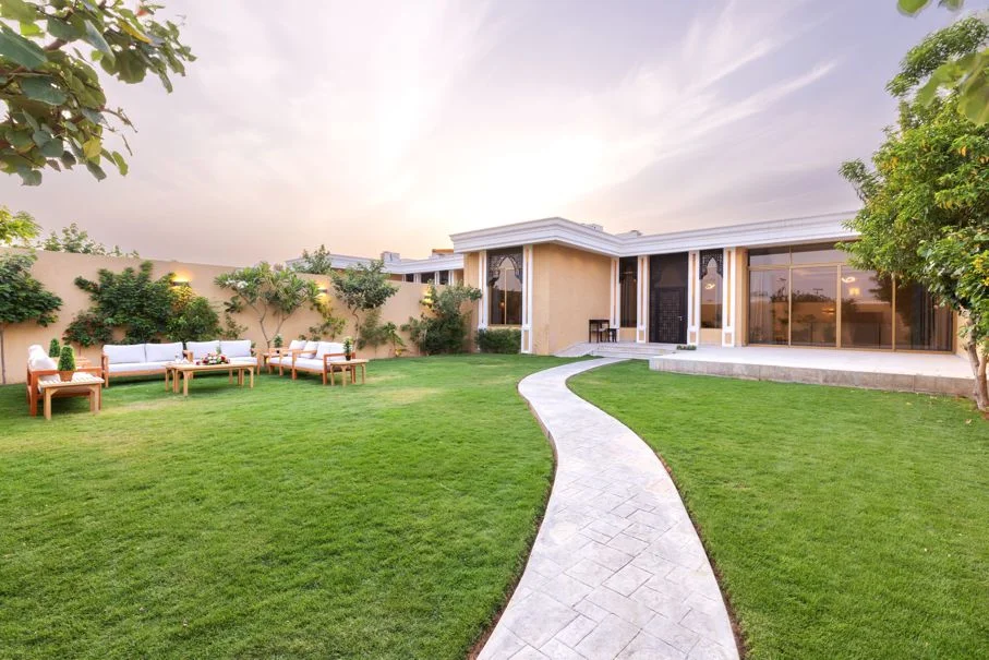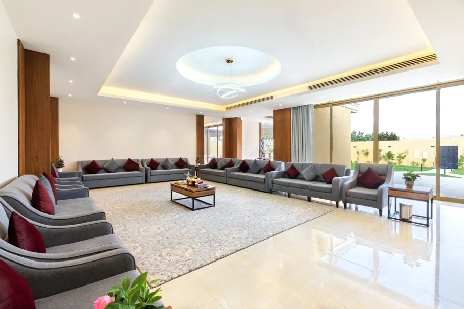 Villa with an indoor majlis (lounge) accommodating approximately 30 people.